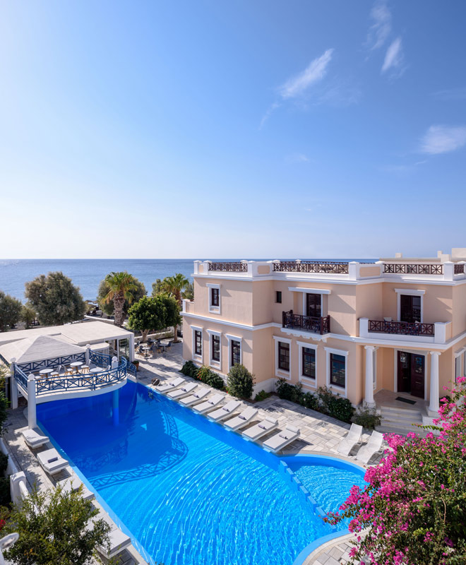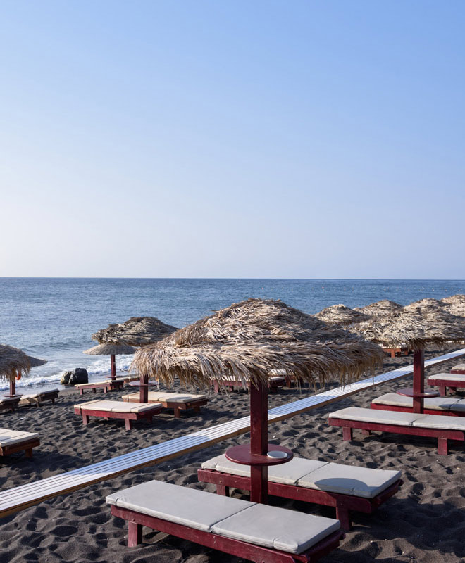 The Veggera Hotel in Santorini is situated on the famous black sandy beach of the cosmopolitan settlement of Perissa, in southeast Santorini.